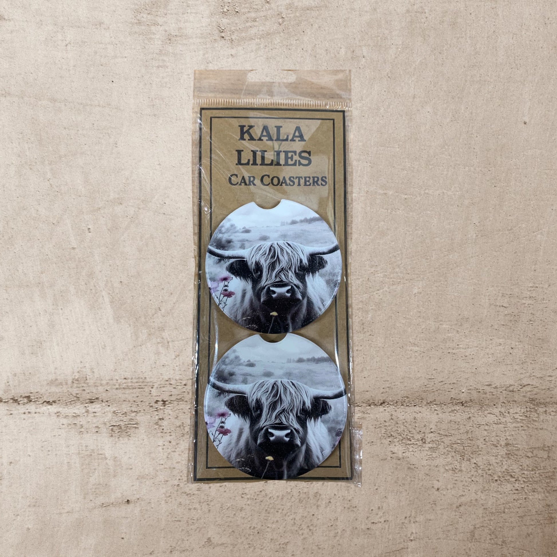 Highland Cow Car Cup Holder Coaster –UV Printed Ceramic Car Coaters