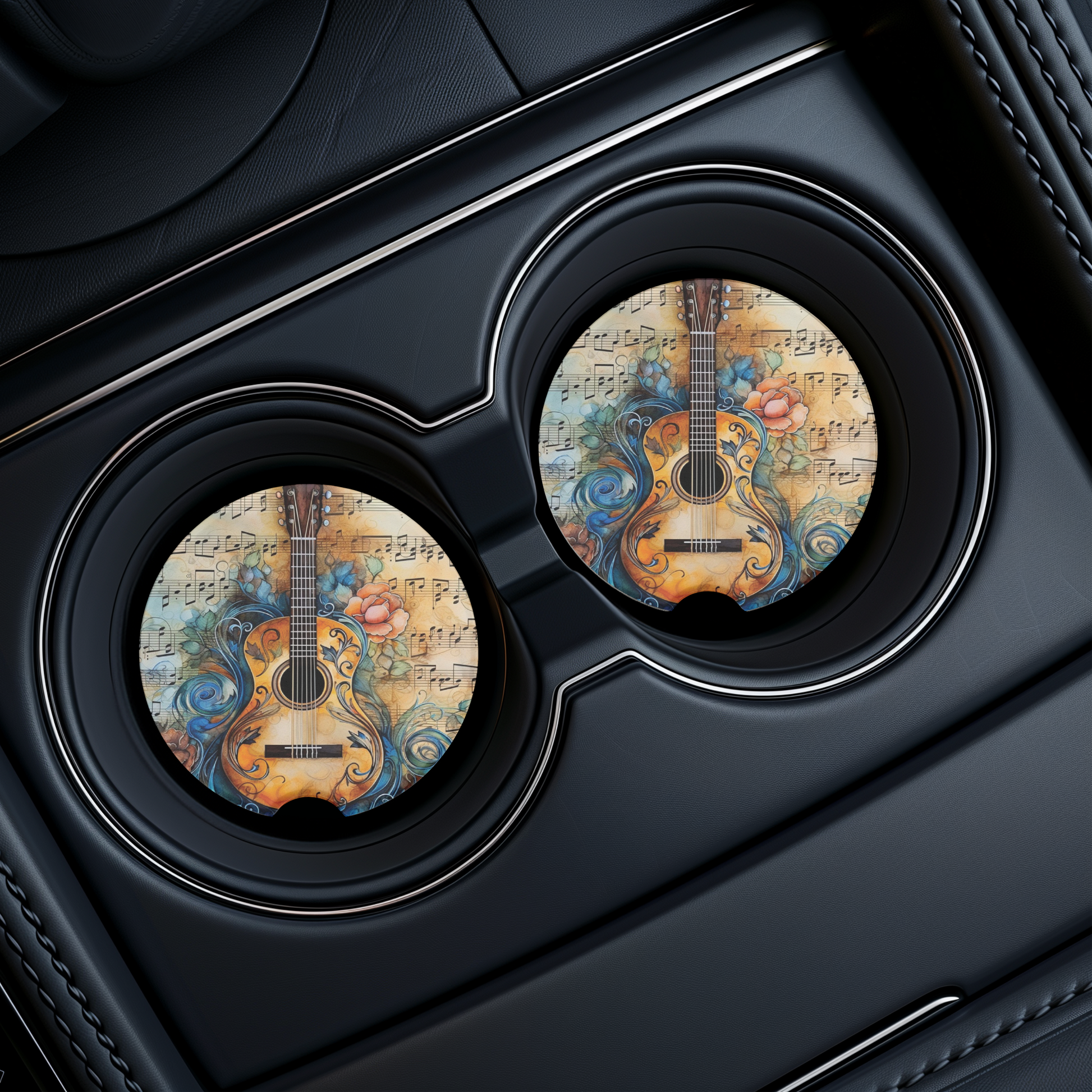 Country Guitar Car Coaster – “Just a Girl Who Loves Country Music” UV Printed Ceramic Cup Holder Insert