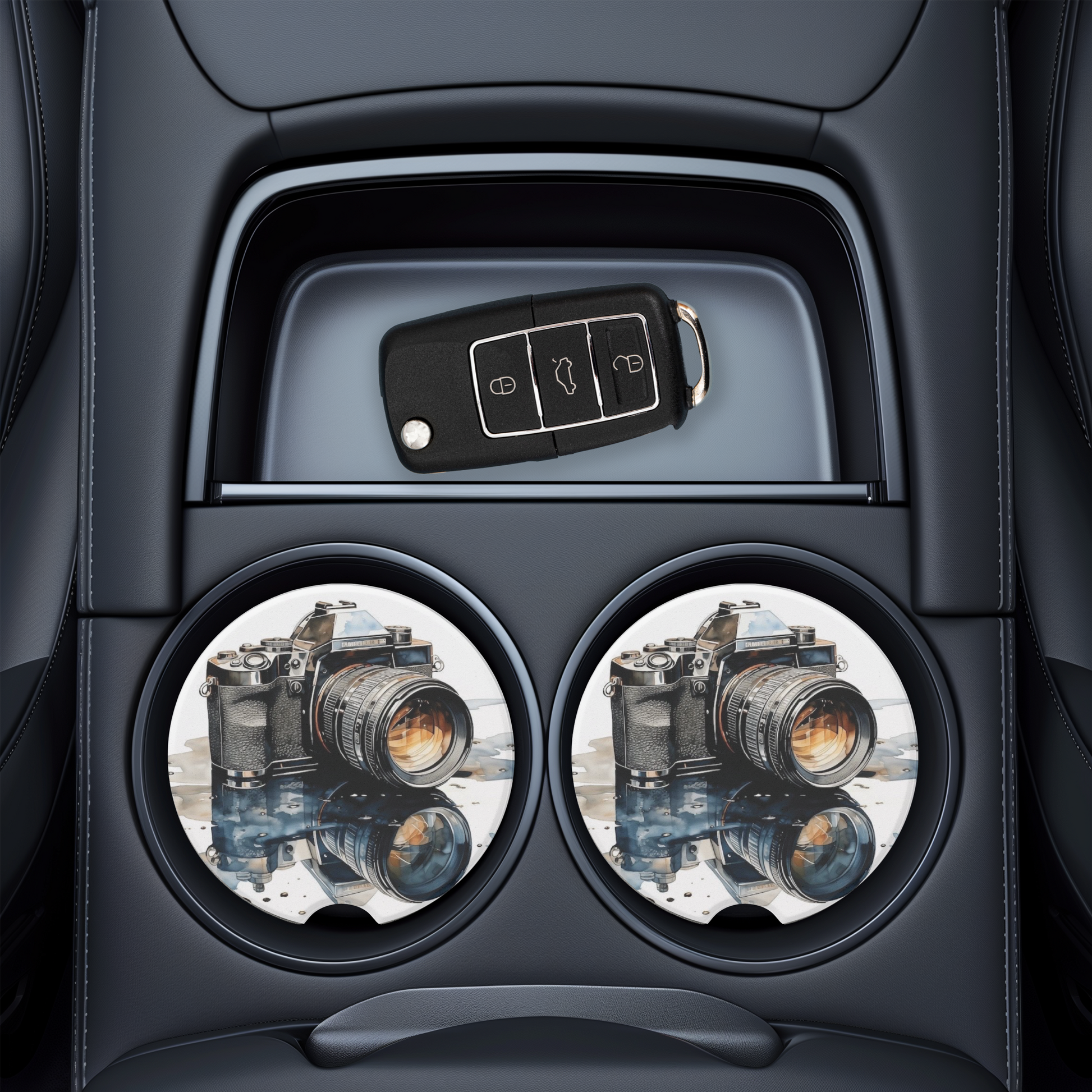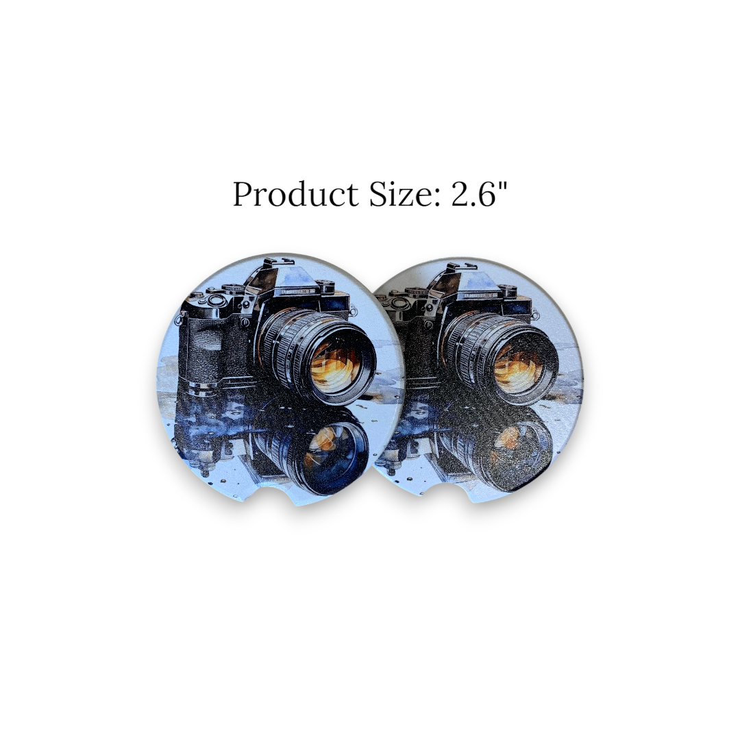 Show off your passion for photography with this UV printed ceramic car coaster featuring a detailed vintage camera design. Made from high-quality absorbent ceramic, this car cup holder insert helps protect your vehicle's interior from spills and condensation while adding a stylish, creative touch. Perfect for photographers, camera lovers, and anyone who appreciates unique car accessories, this durable and decorative coaster makes a thoughtful gift photo enthusiasts.